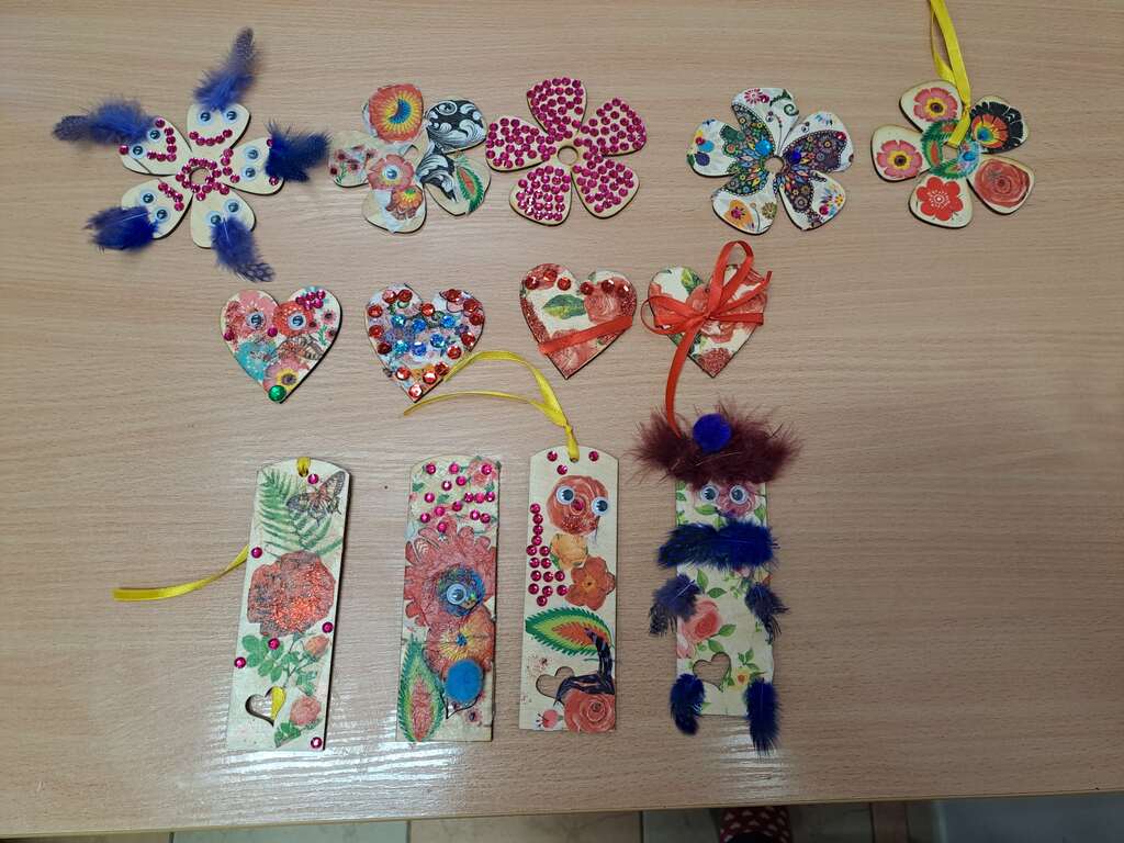 Po części literackiej nadszedł czas na bardzo efektowny decoupage. Nasi goście przepięknie ozdobili kwiatki, zakładki do książek oraz oczywiście serduszka. A ponieważ kreatywność dzieci nie zna granic, oprócz metody decoupage na ich pracach pojawiły się także pióra, cekiny, a nawet oczy. Bardzo się cieszymy, że mogliśmy spędzić walentynki w tak miłym i licznym gronie zarówno dziewczynek, jak i chłopców.