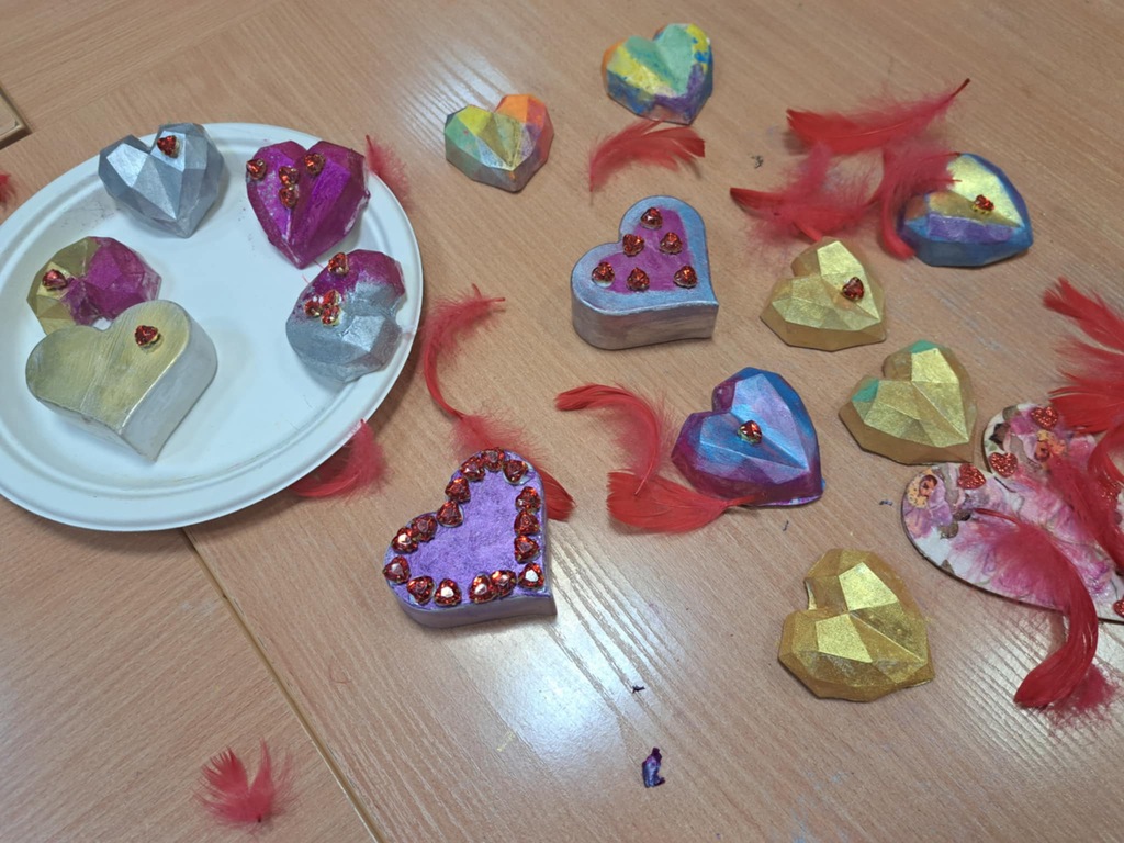 13.02.2025 r. w Bibliotece dla Dzieci i Młodzieży nr 52 odbyły się warsztaty plastyczne w ramach akcji „Zima w mieście,” na których nasi goście wykonali walentynkowe upominki – serduszka ozdobione metodą decoupage oraz gipsowe, malowane metodą wcierki. Zajęcia przeznaczone były dla uczniów szkół podstawowych, ale entuzjazm i romantyczna aura naszych uczestników udzieliły się również ich opiekunom, którzy chętnie dołączyli do zajęć. Efekty prac pokazujemy na zdjęciach.
