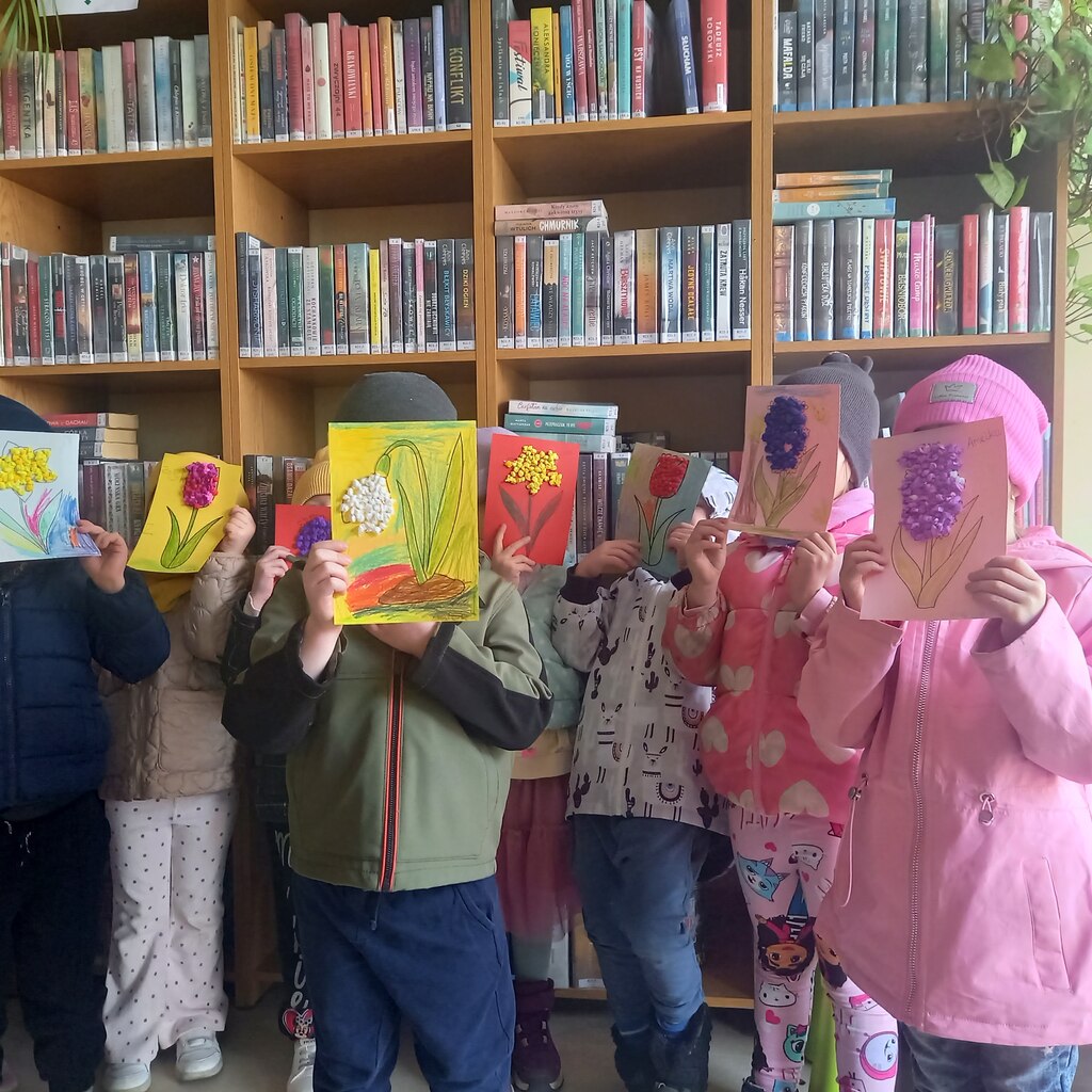 W marcu w Wypożyczalni nr 37 przy ulicy Smoleńskiej gościliśmy dzieci z Przedszkola nr 94. Wysłuchały książeczki pt. „Wiosna” autorstwa Małgorzaty Strzałkowskiej. Wspólnie rozmawialiśmy o budzącej się do życia wiośnie, o jej zwiastunach i związanych z nią zwyczajach. Zwieńczeniem spotkań było wykonanie prac plastycznych.