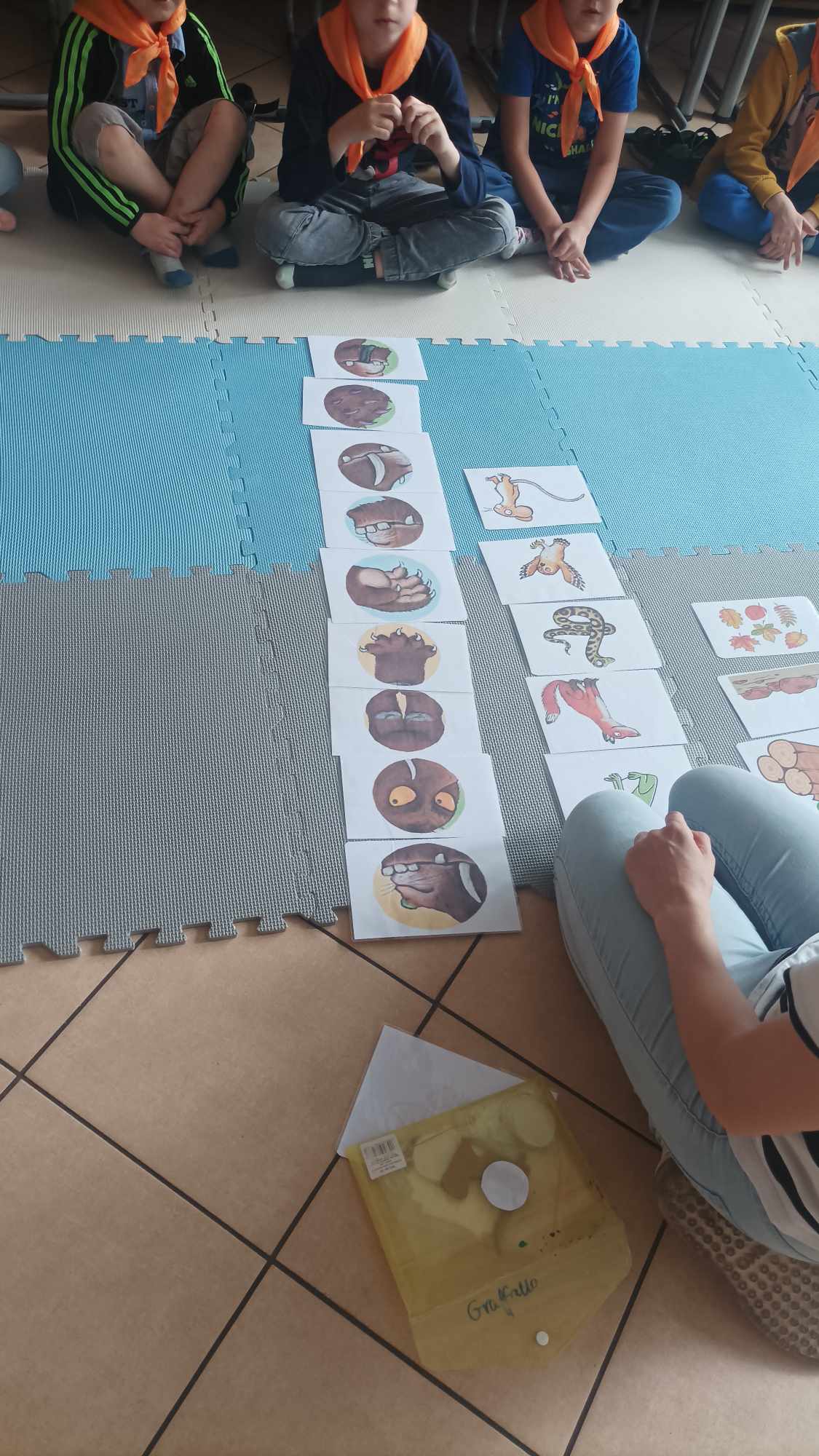 Podczas czytania dzieci, które miały odpowiedni obrazek, wstawały, wykonywały obrót i siadały na miejsce. Tekst posłużył także do pogadanki o oswajaniu strachu i o tym, że często „strach ma wielkie oczy”.