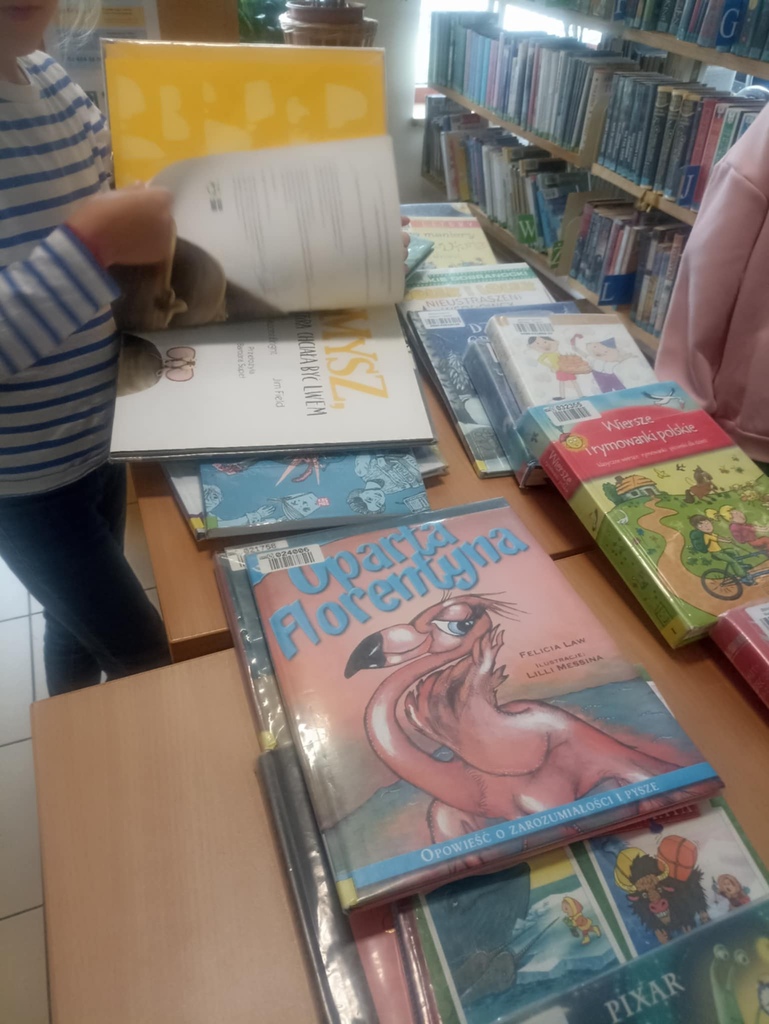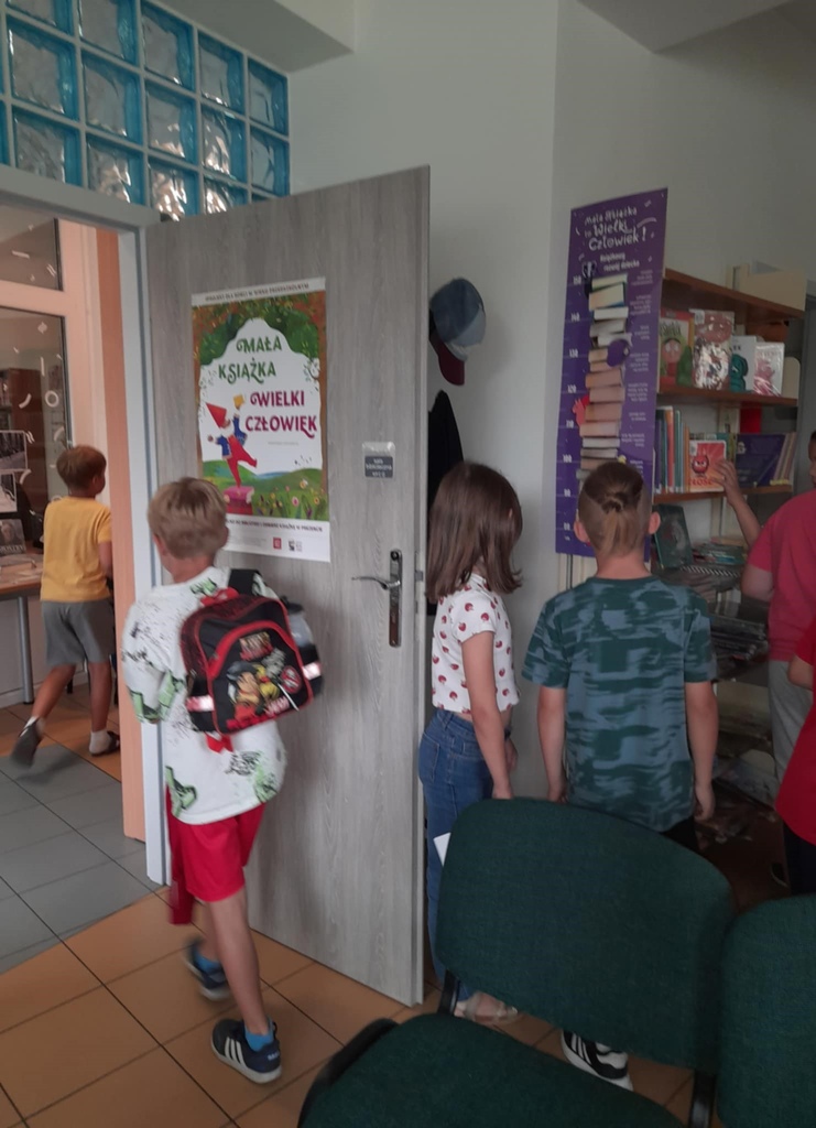 Znalazł się również czas na oglądanie i czytanie książek, a także oczywiście na pozowanie do zdjęć. Dzieci, zadowolone z mile spędzonego czasu w bibliotece, obiecały, że chętnie do nas wrócą – nie tylko po książki.