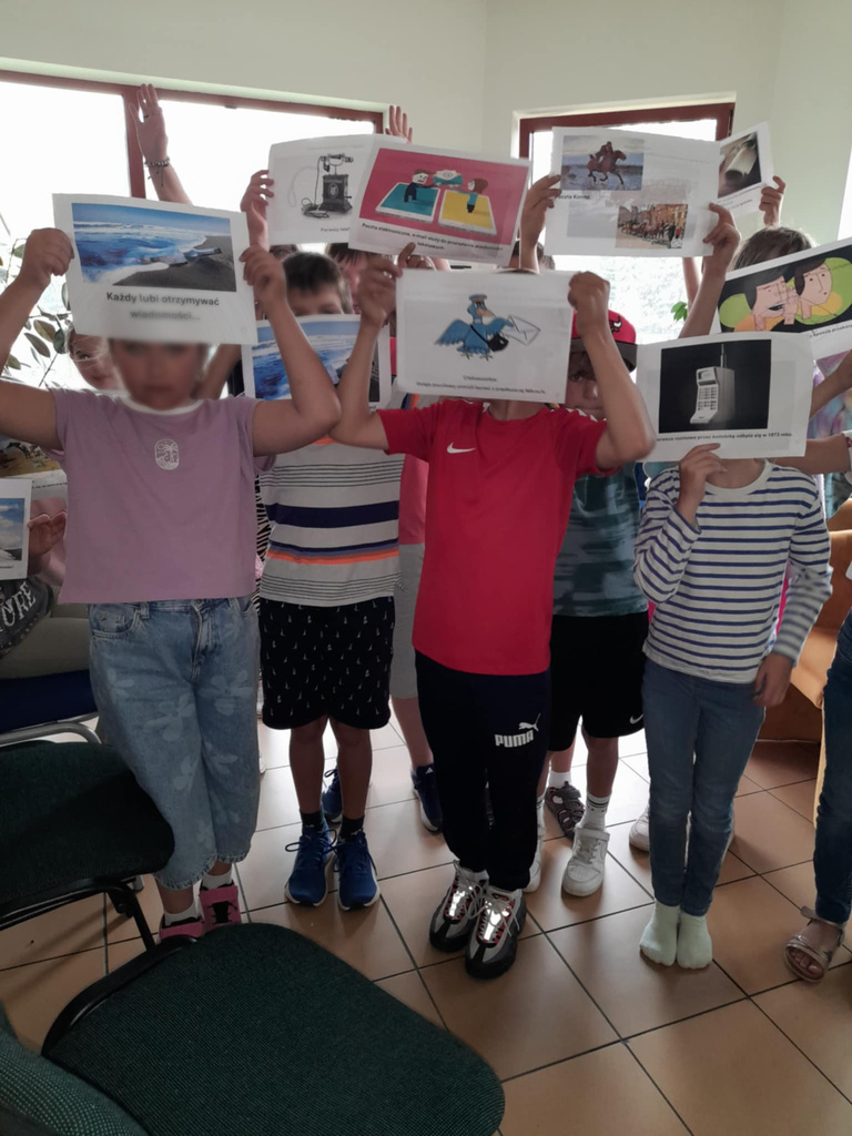 Po wysłuchaniu krótkiej historii dzieci pobawiły się w „głuchy telefon”. Jest to popularna zabawa, która rozwija umiejętności komunikacyjne, koncentrację i wyobraźnię dzieci, a także uczy o zmianach informacji oraz zniekształceniu komunikatu w trakcie przekazu.