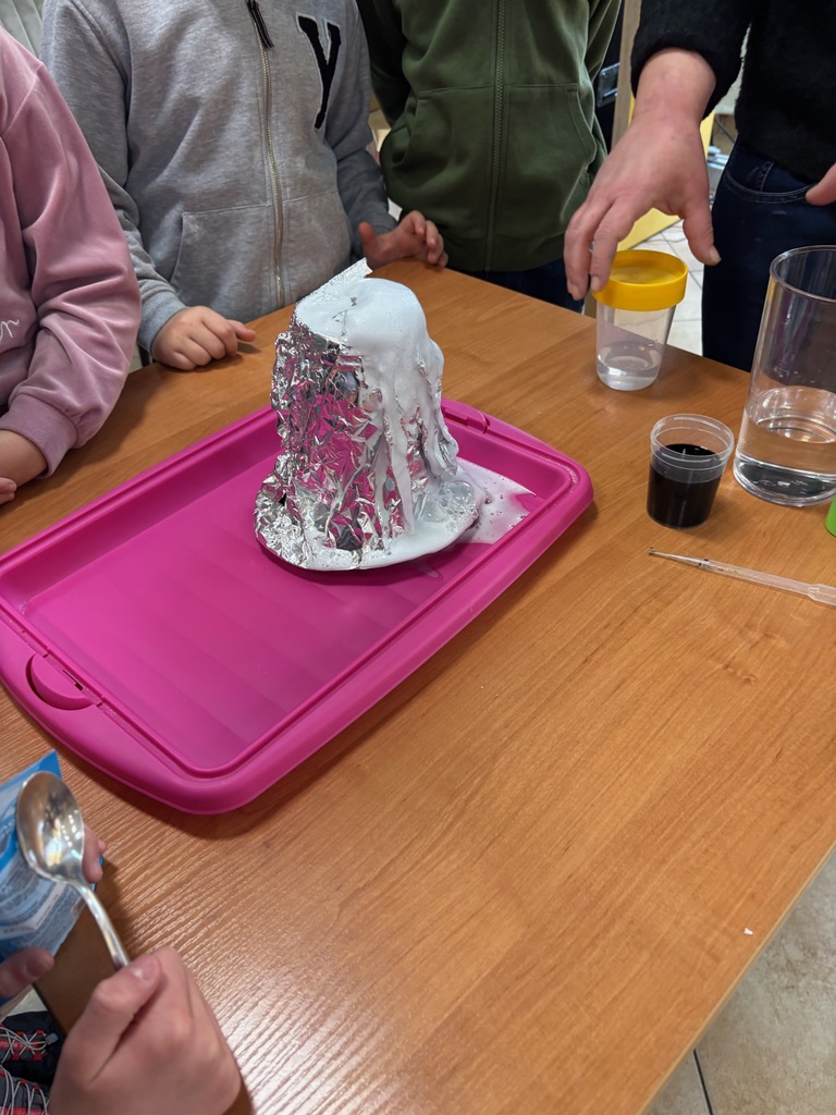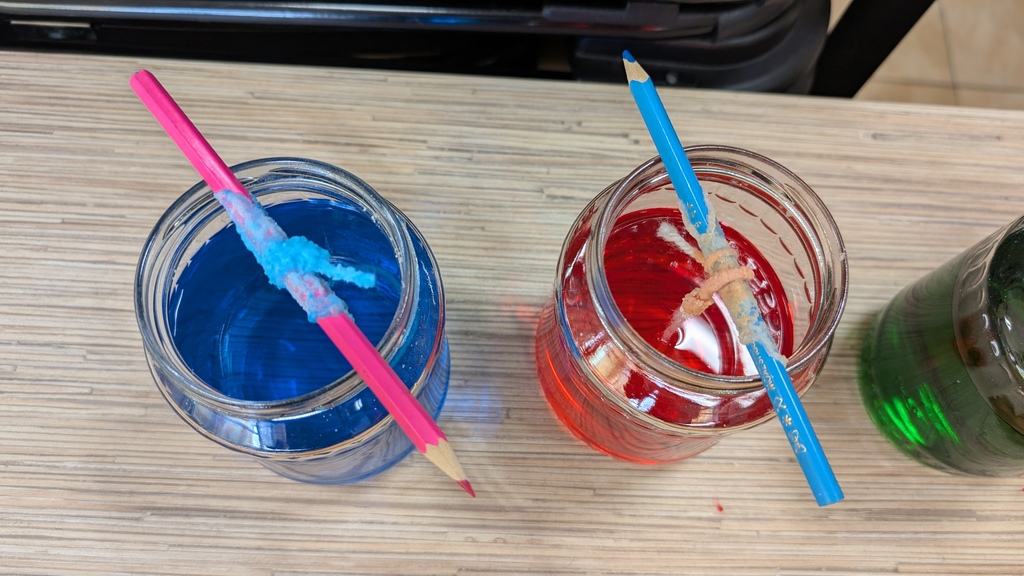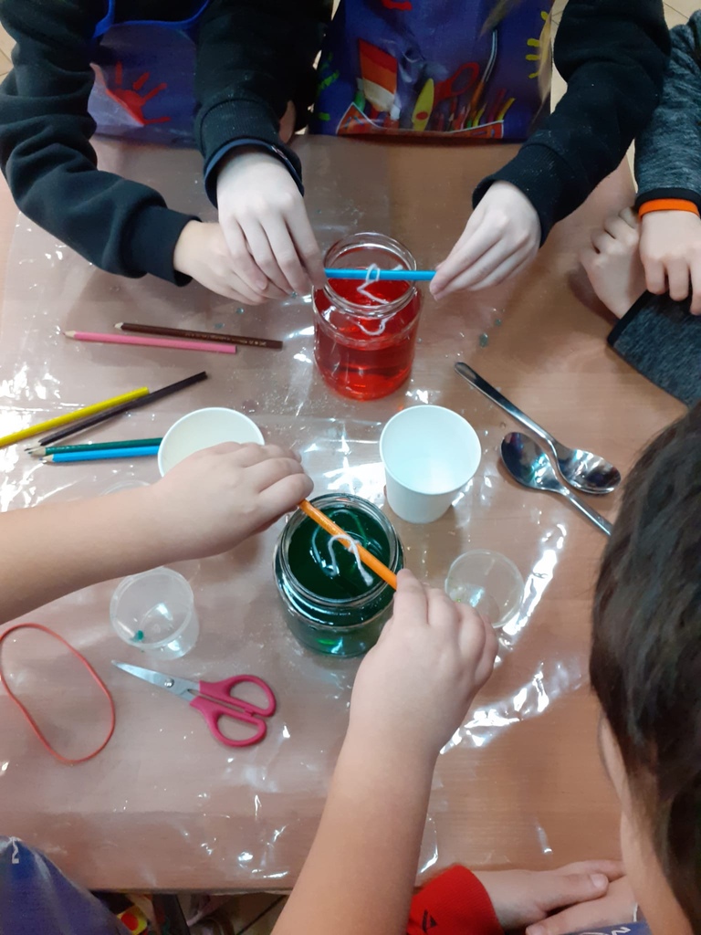 Kiedy emocje po tych spektakularnych eksperymentach nieco opadły, znów je wywindowaliśmy, zapraszając dzieci, by stworzyły… własną hodowlę kryształów! 💎 Z każdym dniem rosną i zamieniają się w coraz efektowniejsze okazy.